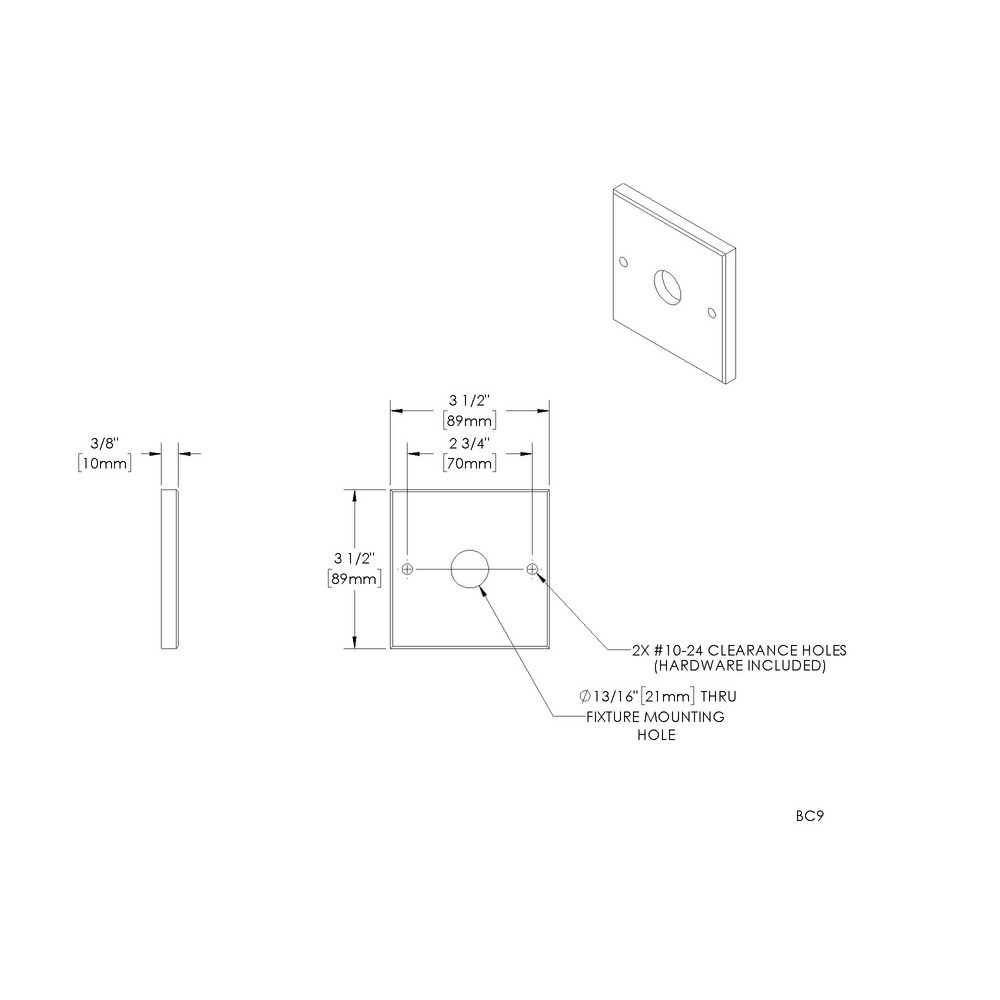 Installation: For use with 3’’ recessed octagonal junction box or 3” mud ring on 4” octogonal junction box (by others).
