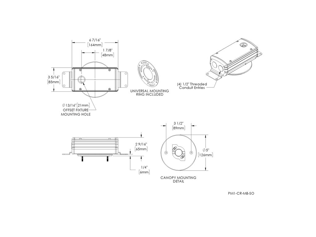 Universal Power Module PM1 - Tree Strap Mount - 24" - With Safety Cable and Mounting Brackets - Transformer - Single Fixture - Offset - Aluminum