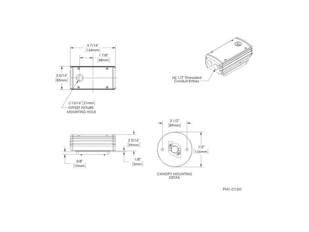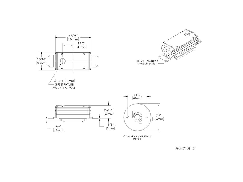 Universal Power Module PM1 - Tree Strap Mount - 24" - With Safety Cable - Transformer - Single Fixture - Offset - Aluminum