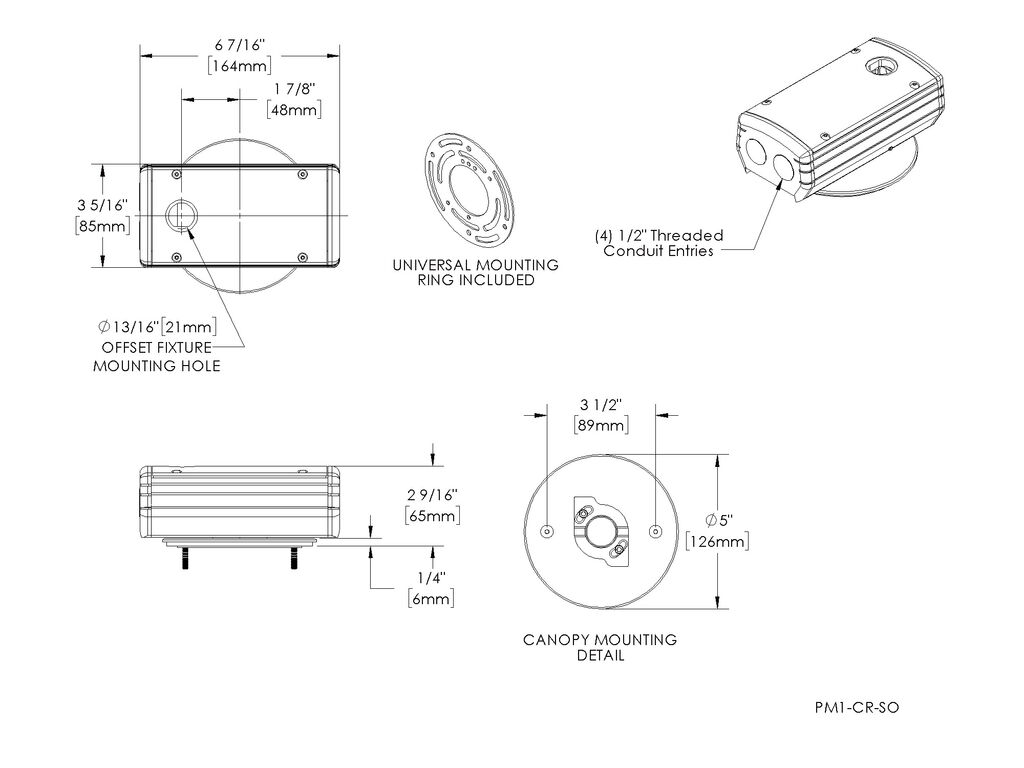 Universal Power Module PM2 - Tree Strap Mount - 72" - With Safety Cable and Mounting Brackets - Transformer - Single Fixture - Offset - Aluminum