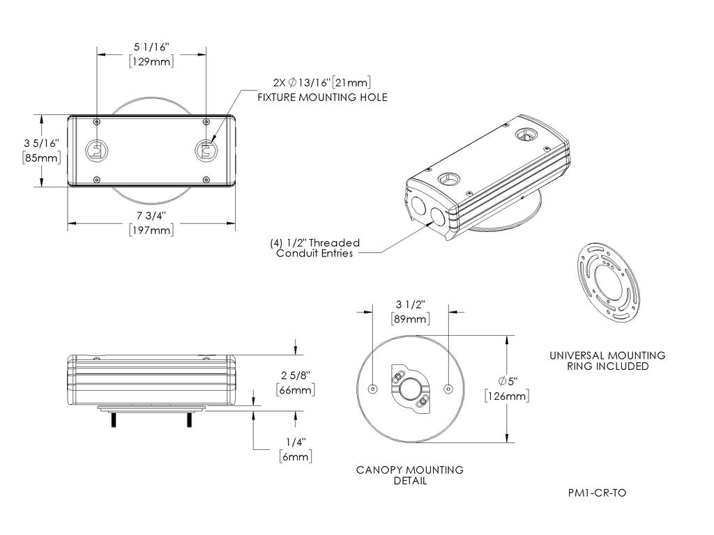 Universal Power Module PM2 - Tree Strap Mount - 72" - With Safety Cable and Mounting Brackets - Transformer - Single Fixture - Aluminum