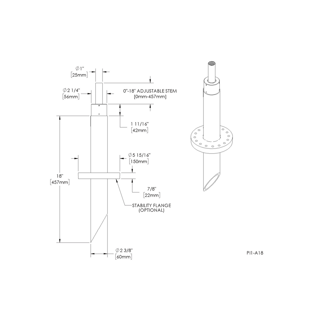 Pipe PI1 - 18” Adjustable Stem - Single - Aluminum