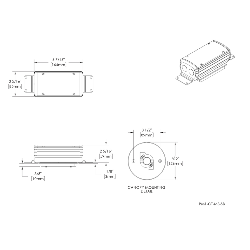 Installation: 5” x 3" canopy. For use with single gang junction box. Camlock provides additional 30° adjustment for precision alignment of UPM regardless of junction box orientation. Mounting brackets to anchor to surface.